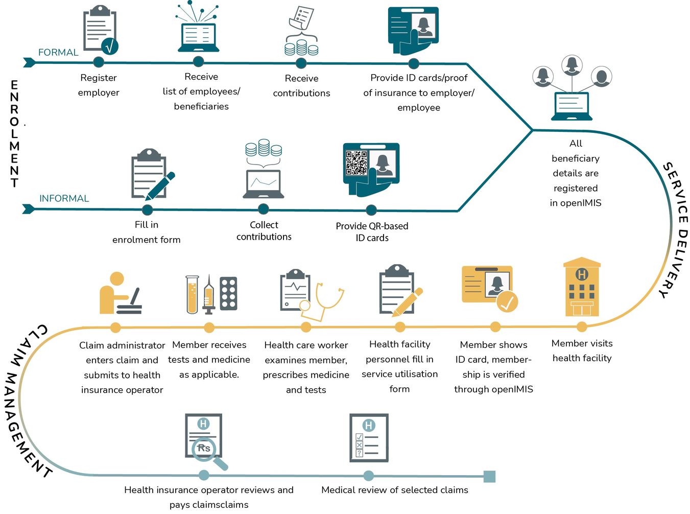 Step 1: Choosing and Enrolling in a Plan. You select a health insurance plan based on your needs—through your job, the ACA Marketplace, or directly from an insurer. In 2026, open enrollment for Marketplace plans runs from November 1, 2025, to January 15, 2026. Pay your first premium to activate coverage.