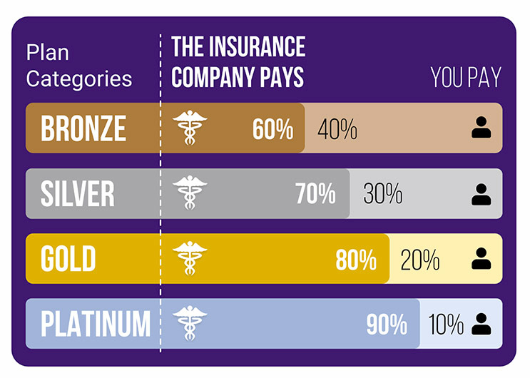 Marketplace Plans: Bronze (60% coverage, low premium), Silver (70%), Gold (80%), Platinum (90%). Catastrophic for under-30s or hardships.