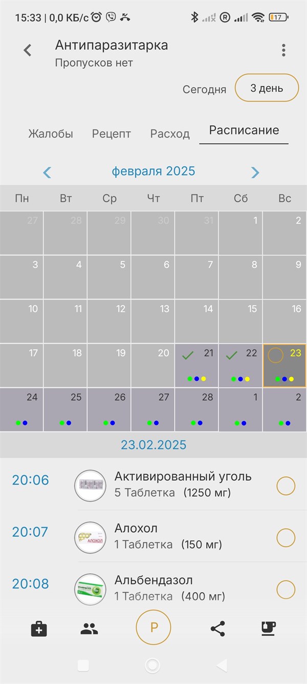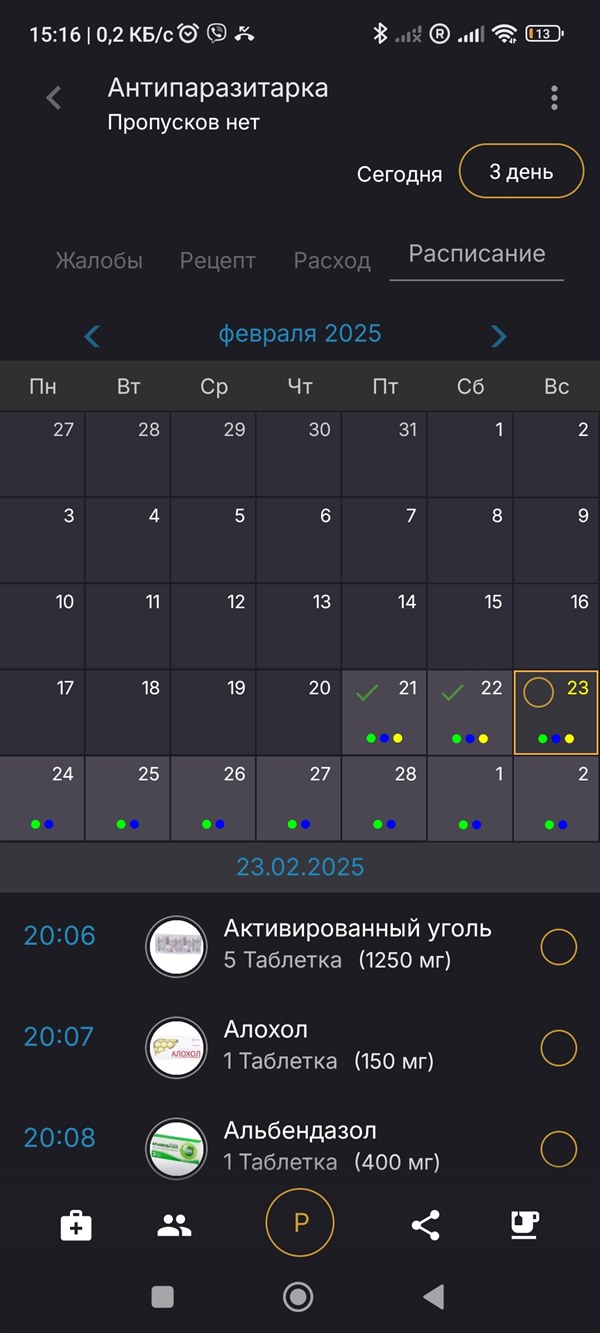 График приема таблеток — удобный календарь, способ следить за ежедневным приемом препаратов с возможностью отметки уже принятых доз.